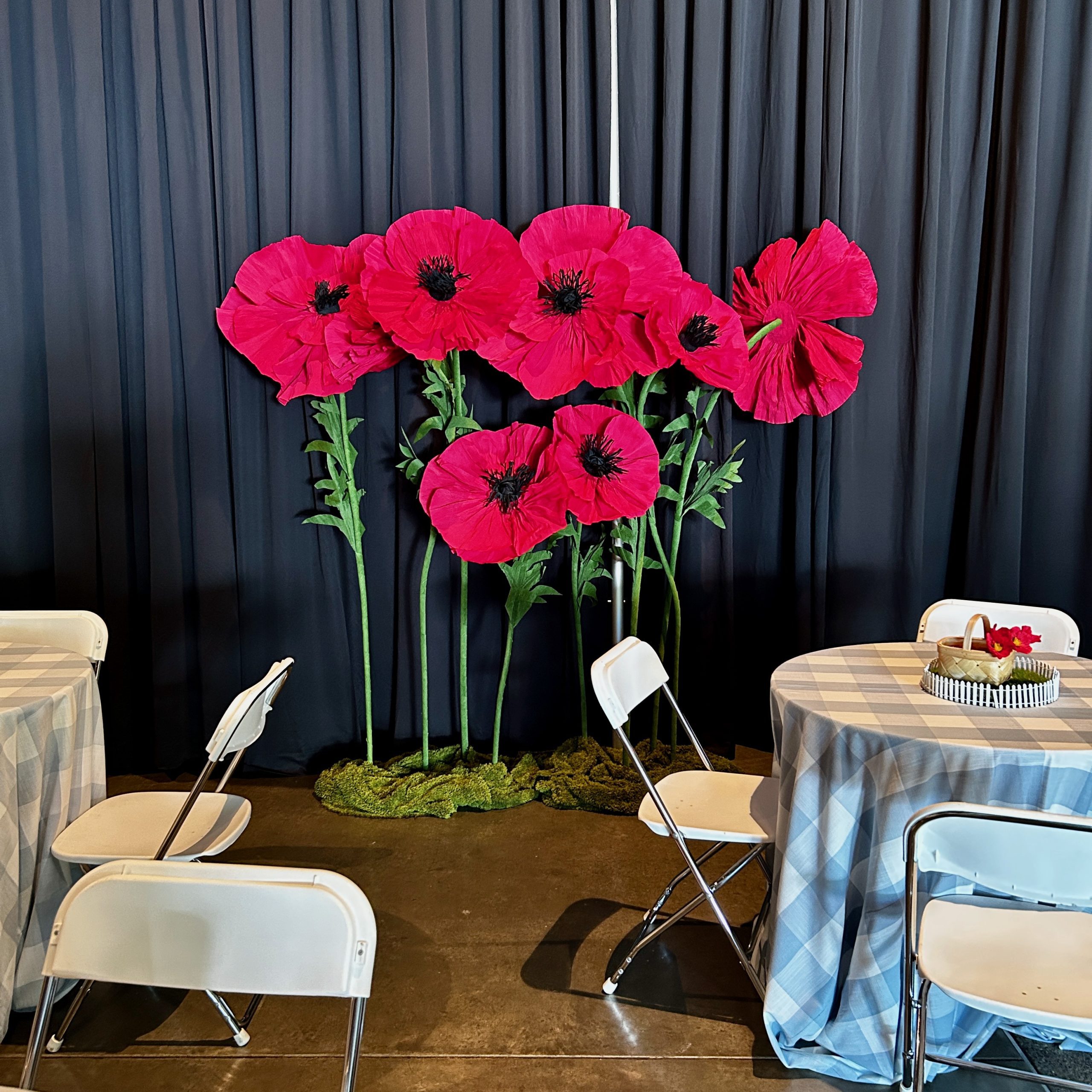 • Hand-crafted crepe paper poppies